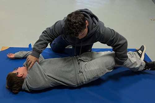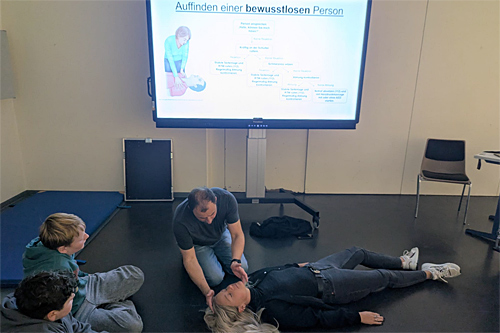 Sportunterricht trotz Sanierungsmaßnahme in der Sporthalle - Seit einem halben Jahr muss unsere Schule nun schon auf die Nutzung der Sporthalle verzichten. Dies nehmen wir gerne in Kauf, denn wir freuen uns auf die entstehende sanierte Halle. Auf den Sportunterricht wollen wir jedoch nicht verzichten, gerade jetzt im Herbst und Winter, wo die Nutzung der Außensportanlagen auch nur eingeschränkt möglich ist. Neben der Sporthalle der Grundschule, stellt uns auch die BBS Jever ihre Halle für unseren 8. Jahrgang zur Verfügung. Trotzdem müssen wir kreativ werden, um Bewegung im Schulalltag zu halten. Neben der bewegten Pause und der Discopause werden Ganztagessportprojekte, Sporttheorie und ganz neu gedachte Unterrichtsinhalte umgesetzt. So war der 6. Jahrgang in Sande Eislaufen, der 7. Jahrgang startete mit der Herzsicher-Schulung der Björn-Steiger-Stiftung (erste Hilfe) und unser Forum verwandelt sich regelmäßig in eine kleine Sporthalle. Weitere Projekte folgen, so wird der 10. Jahrgang in diesem Jahr sicherlich verstärkt Tanzen für den Abschlussball üben.