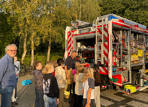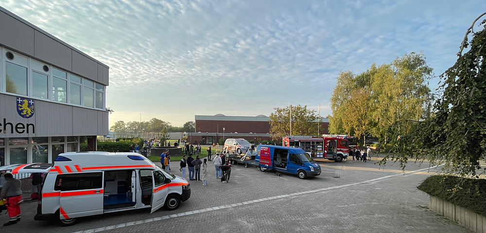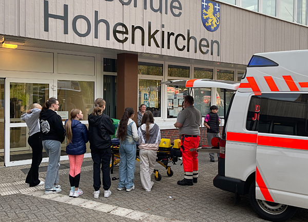 Zwei Löschfahrzeuge der freiwilligen Feuerwehr Hohenkirchen waren am Aktionstag im Einsatz. Den Schüler:innen wurde in Rettungsaktionen und Vorführungen deutlich, dass die Feuerwehr weit mehr ist als „nur“ ein Löschtrupp. Ebenso konnten die Jugendlichen die Fahrzeugtechnik und die im Einsatz notwendigen Geräte sowie Materialien praxisnah kennen lernen.