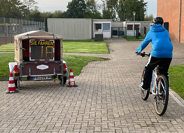 Das Geschwindigkeitsdisplay der Verkehrswacht ist ebenso ein sinnvoller Beitrag zur aktiven Verkehrserziehung. Durch das Anzeigen der Geschwindigkeit kann die Wachsamkeit von Verkehrsteilnehmern gefördert werden. Am Aktionstag wurde an dieser Station die gelaufene, mit dem Fahrrad gefahrene oder mit Inlinern erreichte Geschwindigkeit auf dem großen Display angezeigt und anschließend von Experten bewertet. Auch in diesem Jahr war der Mobilitäts- und Verkehrssicherheitstag ein voller Erfolg. Ein großes Dankeschön deshalb an den Hauptorganisator Heiko Hinrichs, den vielen Helfer:innen sowie den zahlreichen regionalen Institutionen und Betrieben für die großartige Unterstützung.