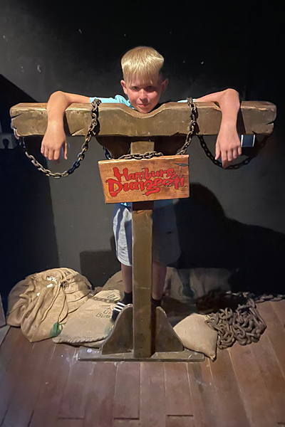 Am Montag fuhr der Bus um 8:30 Uhr am Schulzentrum los. Wir kamen um 13:00 Uhr in der Jugendherberge an. Danach sind wir mit der U-Bahn zur Europapassage gefahren, dort waren wir ca. 2 Std. und konnten uns verpflegen und erste Einkäufe erledigen. Am Abend sind wir mit der Fähre zum Elbstrand gefahren, an dem einige Mitschüler:innen ein kühles Bad nahmen. Am nächsten Tag haben wir das Dungeon besucht. Es war ein tolles Erlebnis durch die Gänge zu laufen und den gruseligen Schauspielern zuzuhören. Danach sind wir zur Elbphilharmonie gelaufen und fuhren die lange Rolltreppe zur Besucherterrasse hinauf. Von dort konnte man einen großen Teil des Hamburger Hafens und die Innenstadt überblicken. Danach haben wir den Michel bestiegen. Es ging 452 Stufen hoch und runter. Man durfte aber auch den Fahrstuhl nutzen.