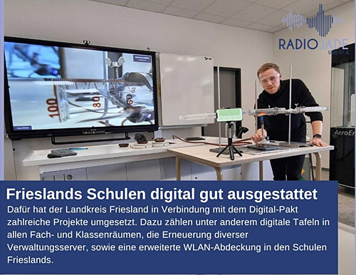 | 18.01.2024 - (Beitrag von Arian Memeti) Seite des Beitrages (mit Audio-Stream): Digitales Klassenzimmer der Oberschule Hohenkirchen vorgestellt |