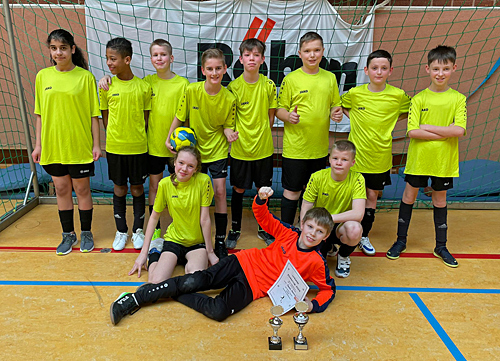 Elisa-Kauffeld-Oberschule Jever, der IGS Friesland Nord Schortens, der Marie-Dönhoff-Oberschule Wilhelmshaven und der OBS Varel. Besonders herausragend war die Leistung unseres Torwarts Tamme Mennen aus der Klasse 6a, der von den teilnehmenden Mannschaften zum besten Torwart des Turniers gewählt wurde und einen Pokal und eine Urkunde mit nach Hause nehmen durfte. Ein großer Dank geht auch an Herrn Okunneck und Aljoscha Dörfel aus der Klasse 10a, die die Vorbereitung des Teams übernahmen.