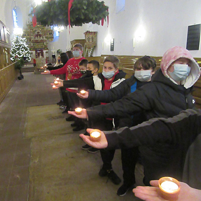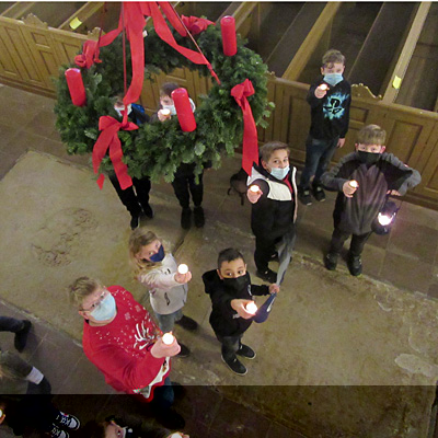 Im feierlichen Rahmen nahmen am Mittwoch, dem 15.12.2021 die Schülerinnen und Schüler der Klasse 5b unter der Leitung von Diakon Fredo Eilts an der Friedenslichtaktion in der Hohenkirchner Kirche teil.