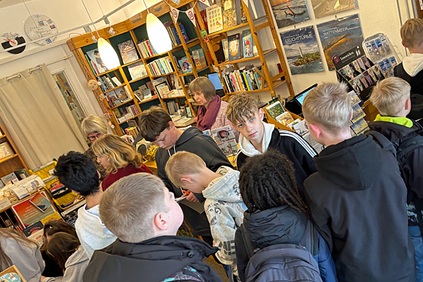 Welttag des Buch 2025 - Besuch der Bücherinsel Horumersiel - Anlässlich des Welttag des Buches besuchte der 5. Jahrgang gemeinsam mit Frau Popken und Herrn Kickler am 23. April 2025 die Bücherinsel Horumersiel von Frau Hanau. Die Schüler:innen nahmen in Kleingruppen an einer Rallye durch das Geschäft teil und hatten dann die Möglichkeit, in der Bücherinsel zu stöbern. Die zwei Gewinner der Rallye durften sich ein Buch aussuchen.