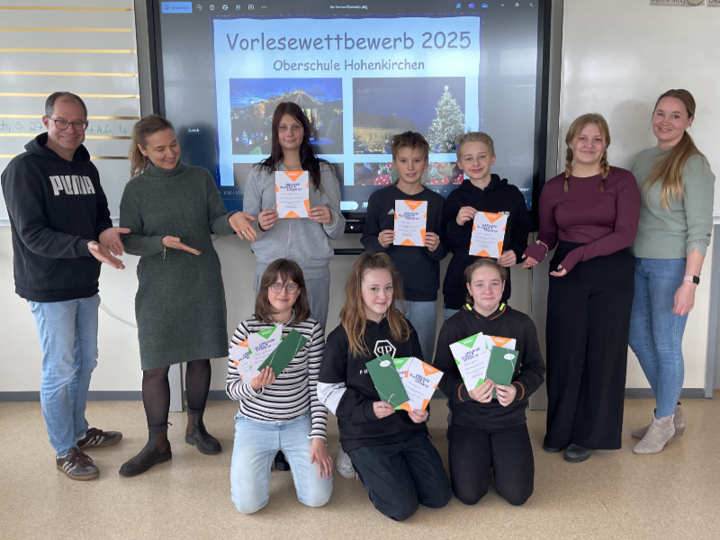 Der Vorlesewettbewerb 2025 hat erneut gezeigt, wie inspirierend Lesen sein kann. Die sechs Klassensieger:innen der sechsten Jahrgangsstufe traten am 11.12.2025 im Schulfinale der Oberschule Hohenkirchen gegeneinander an, um ihren Gesamtsieger zu küren. Mit großem Engagement und sichtbarer Lesefreude trugen unsere Schüler:innen ihre Lieblingspassagen vor. Bewertet wurden Lesetechnik, Interpretation und die passende Wahl der Textstelle.